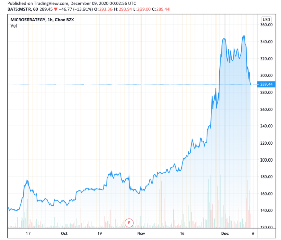 評級下調導致了MicroStrategy股價下跌。 12月8日收盤時,該公司的股價下跌逾13.9%。