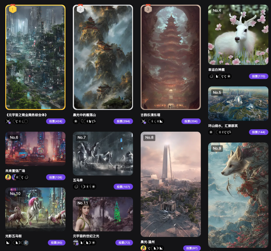 圖:用AI畫出溫州元宇宙主題大賽投票排行榜前10作品