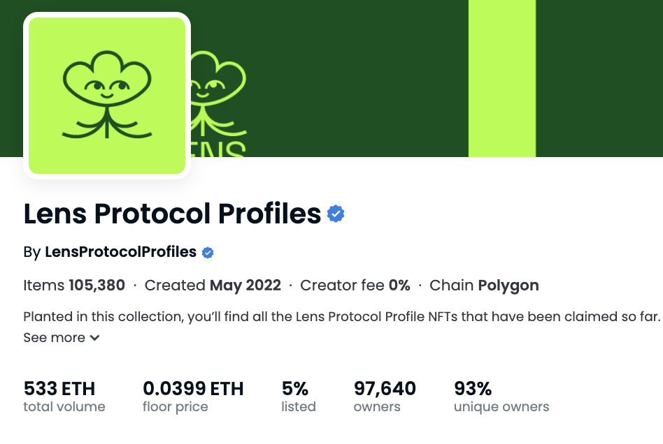 有三種方式,早起參與、白名單、去NFT市場上買。其中現在最簡單方便的就是去opensea平台購買lens nft。