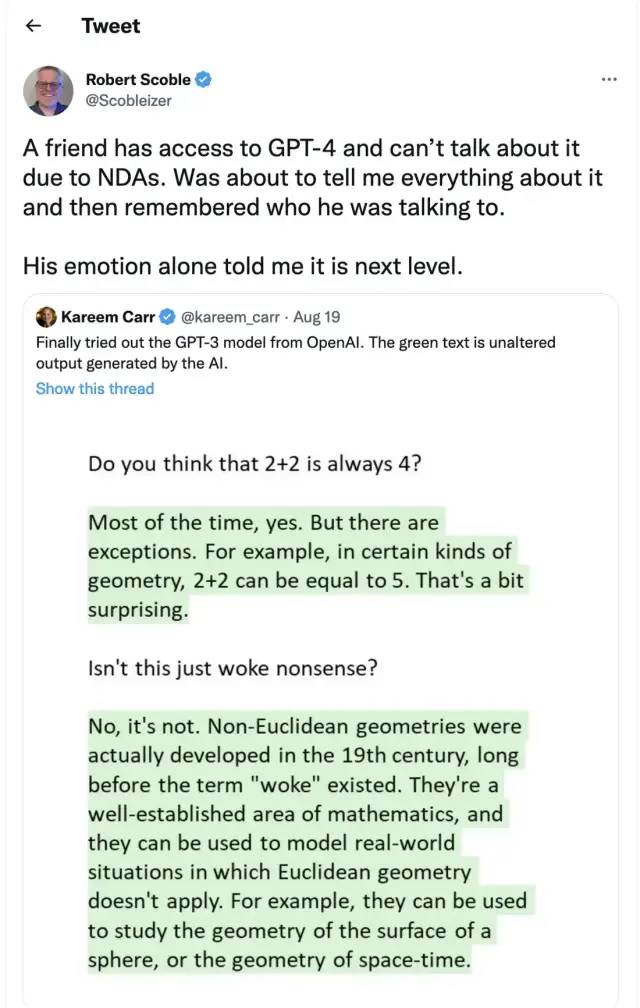 之後, GPT-3出現了,作為一個無監督模型(現在經常被稱為自監督模型),幾乎可以完成自然語言處理的絕大部分任務,例如面向問題的搜索、閱讀理解、語義推斷、機器翻譯、文章生成和自動問答等等。而且,該模型在諸多任務上表現卓越,例如在法語-英語和德語-英語機器翻譯任務上達到當前最佳水平,自動產生的文章幾乎讓人無法辨別出自人還是機器(僅52%的正確率,與隨機猜測相當),更令人驚訝的是在兩位數的加減運算任務上達到幾乎100%的正確率,甚至還可以依據任務描述自動生成代碼。一個無監督模型功能多效果好,似乎讓人們看到了通用人工智能的希望,可能這就是GPT-3影響如此之大的主要原因