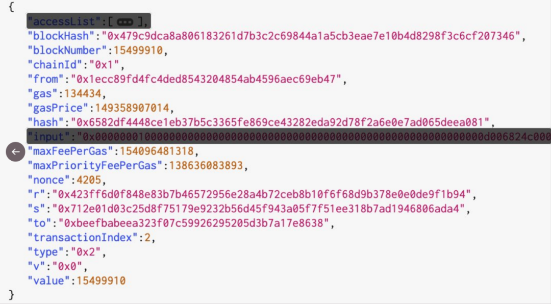 这个部分包括了访问列表(accessList),它是交易将用到的地址和私钥的列表。这笔交易还可以使用该列表以外的资源,但成本会比较高。