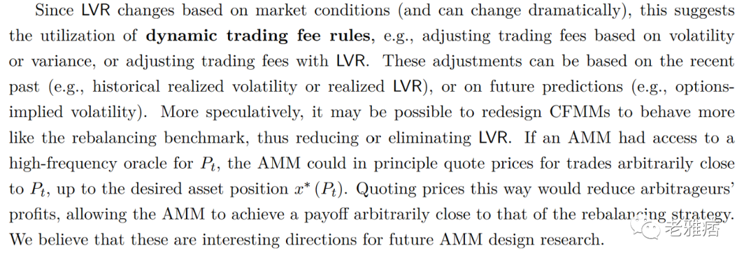 值得注意的是,動態調整流動性費用的概念並不新穎。例如,Milionis、Moallemi、Roughgarden和Zhang最近發表的一篇論文指出,AMM可能希望根據周圍的市場情況調整交易費用: