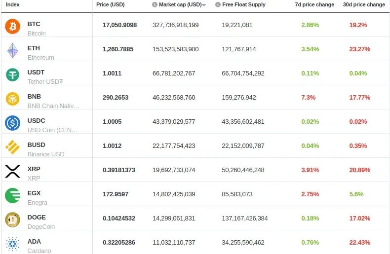 又一周,儘管以太幣(ETH上漲3.5%)和比特幣(BTC上漲2.9%)略有回升,Brave New Coin上的前10大數字資產的市值價格僅出現溫和(個位數)變化。