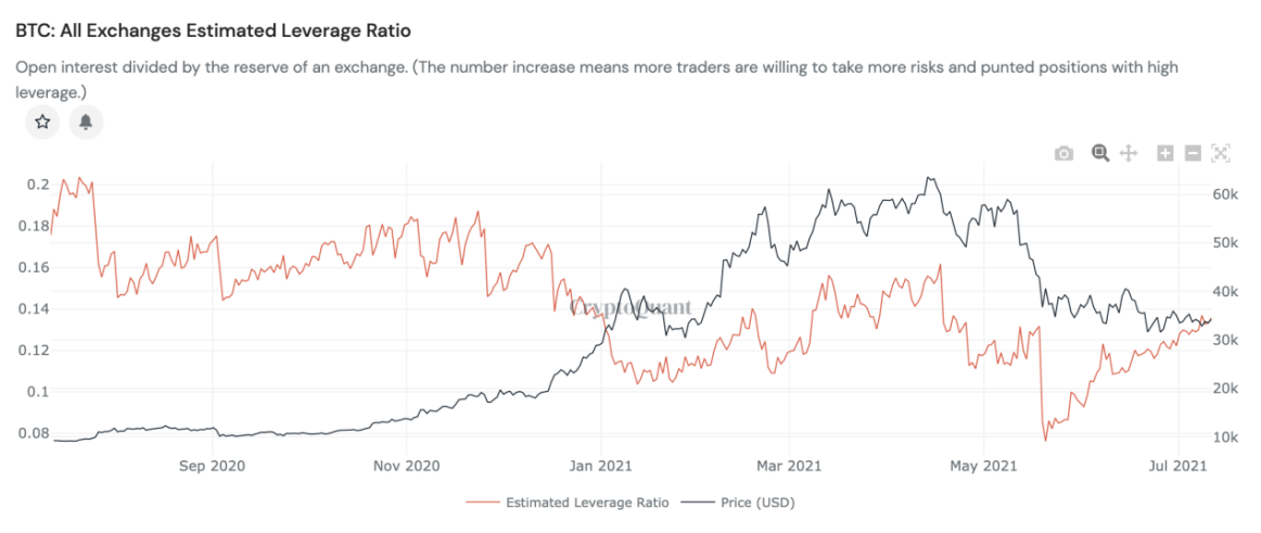 结合同期BTC的走势来看,近期BTC币价仍处于弱平衡状态,短期内这一趋势仍将延续,这或说明当前的市场资金处于存量博弈状态。值得警惕的是,在当下的博弈期间,BTC的市场杠杆率有较大幅度上升。根据CryptoQuant的数据,截至711日,杠杆率约为13.57%520日创造的近期低点7.62%已上升约1倍。