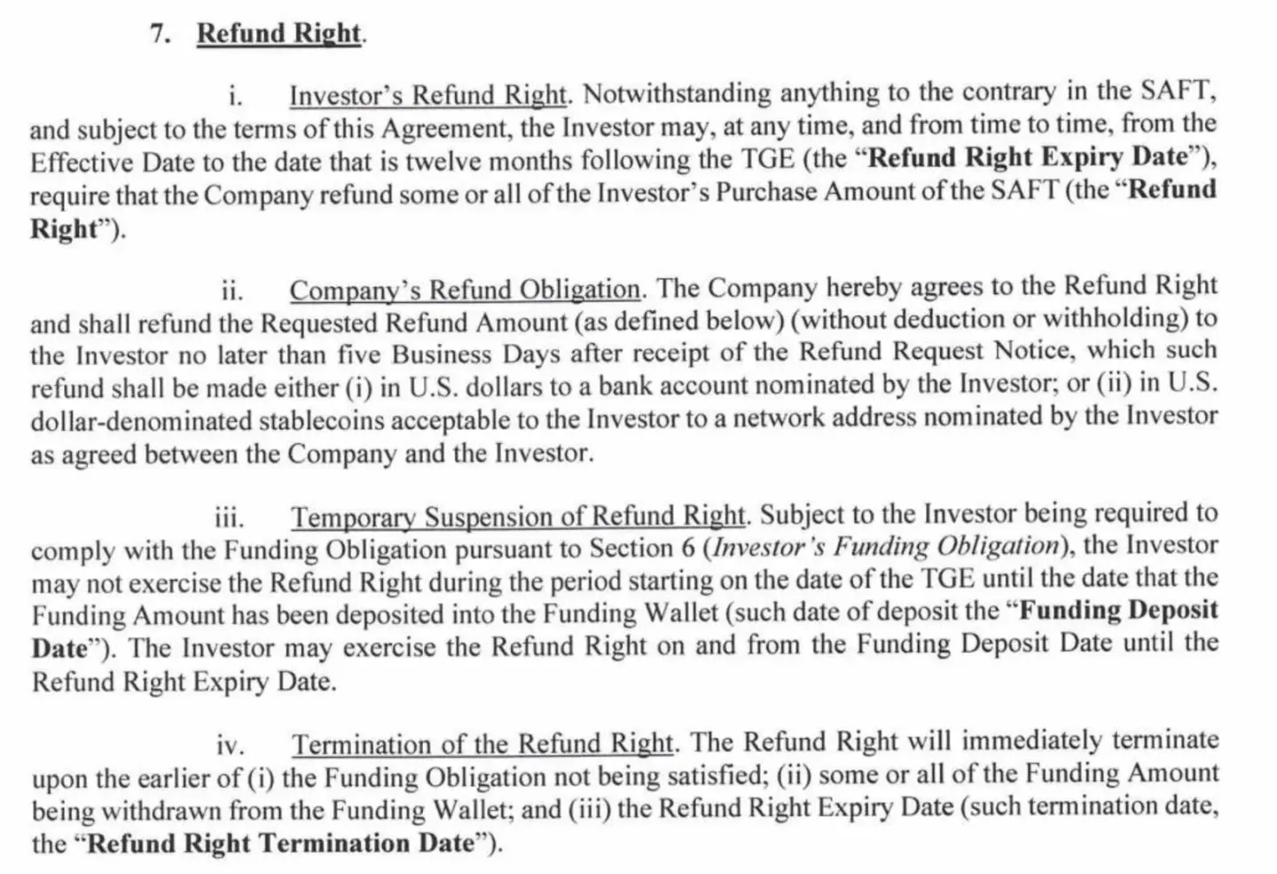 根据披露的文件,Nova Digital 在 2024 年 3 月向 Berachain 投资 2500 万美元,以每枚 3 美元的价格购买 BERA 代币。作为 B 轮融资的联合领投方,该基金通过一份签署于 2024 年 3 月 5 日的侧边协议,获得了在 TGE 后一年内要求全额退款的权利。这意味着,若 BERA 代币价格表现不佳,Nova Digital 可在 2026 年 2 月 6 日前要求 Berachain 返还全部投资本金。
