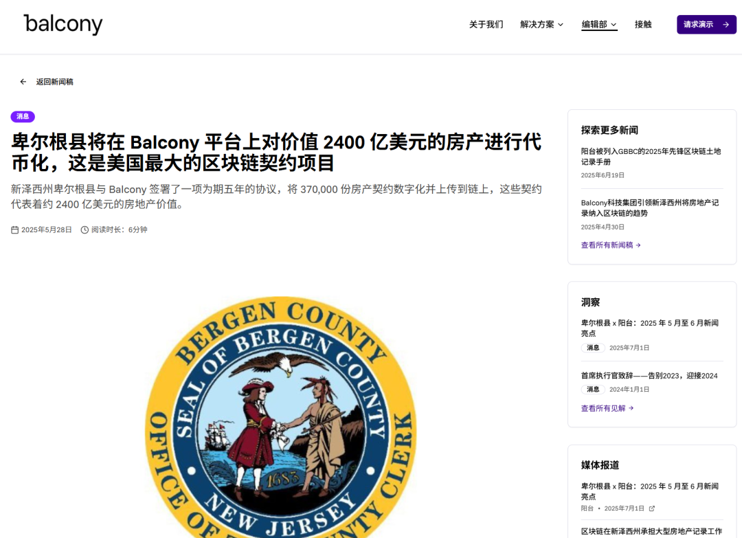 卑尔根县书记官办公室与私营公司Balcony合作,计划将全县37万份、总价值2400亿美元的房地产契约数字化,并将其记录在Avalanche公链。项目的目标并非创造新的金融产品,而是解决现实的行政痛点:将契约处理时间缩短90%以上,并大幅降低欺诈、产权纠纷和管理错误。具体操作上,项目将契约文件的哈希值(一种数字指纹)而非完整文件本身记录在链上,利用区块链的不可篡改性,为现有的档案系统提供一个廉价、可靠的防伪与验证层。