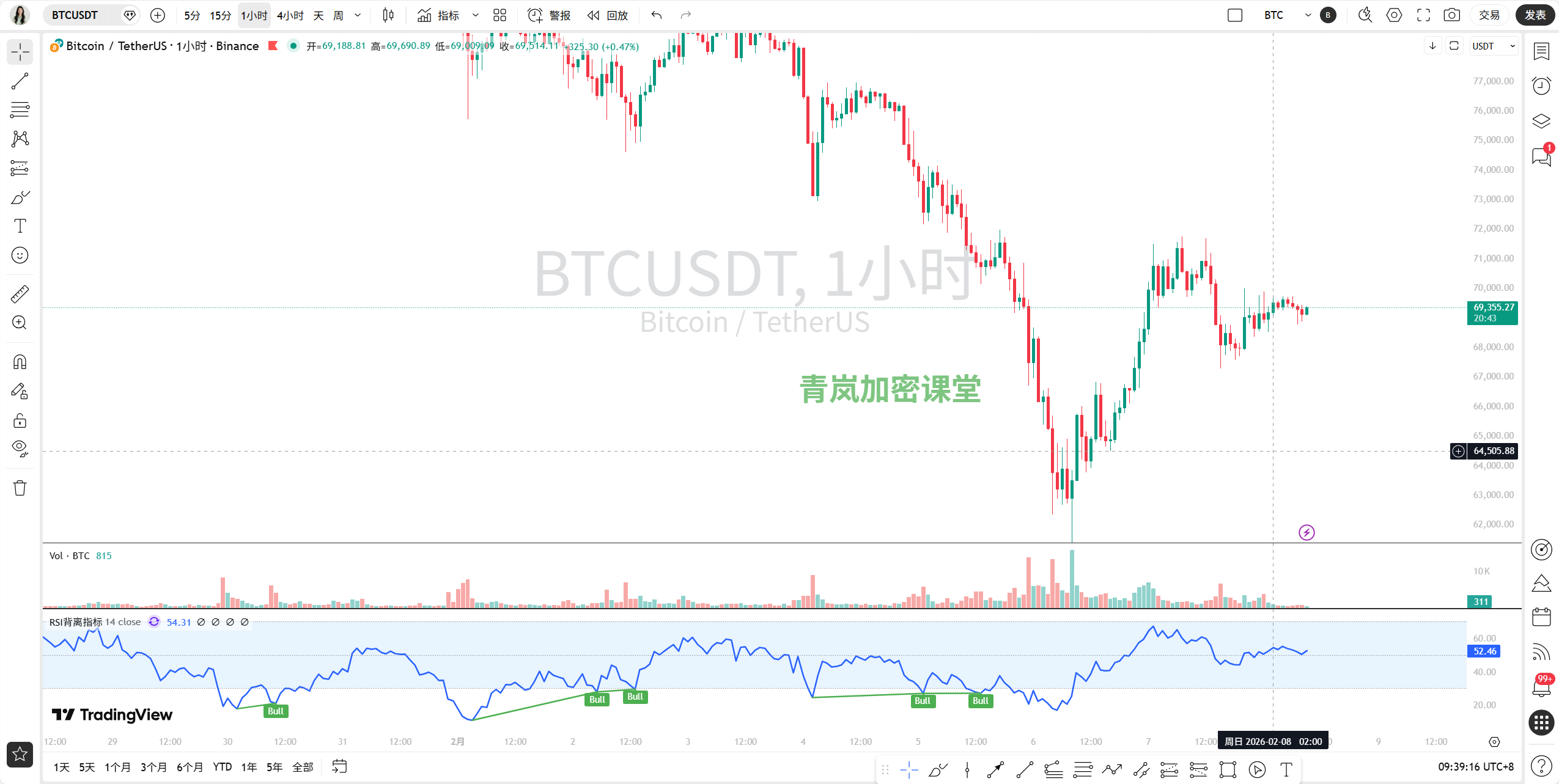 青岚加密课堂 | 2月8日 BTC 分析 | -关键位拉锯,多空决雌雄