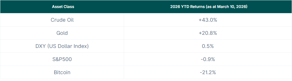 随着伊朗战争爆发,2026 年原油价格飙升速度超过所有其他资产类别。
