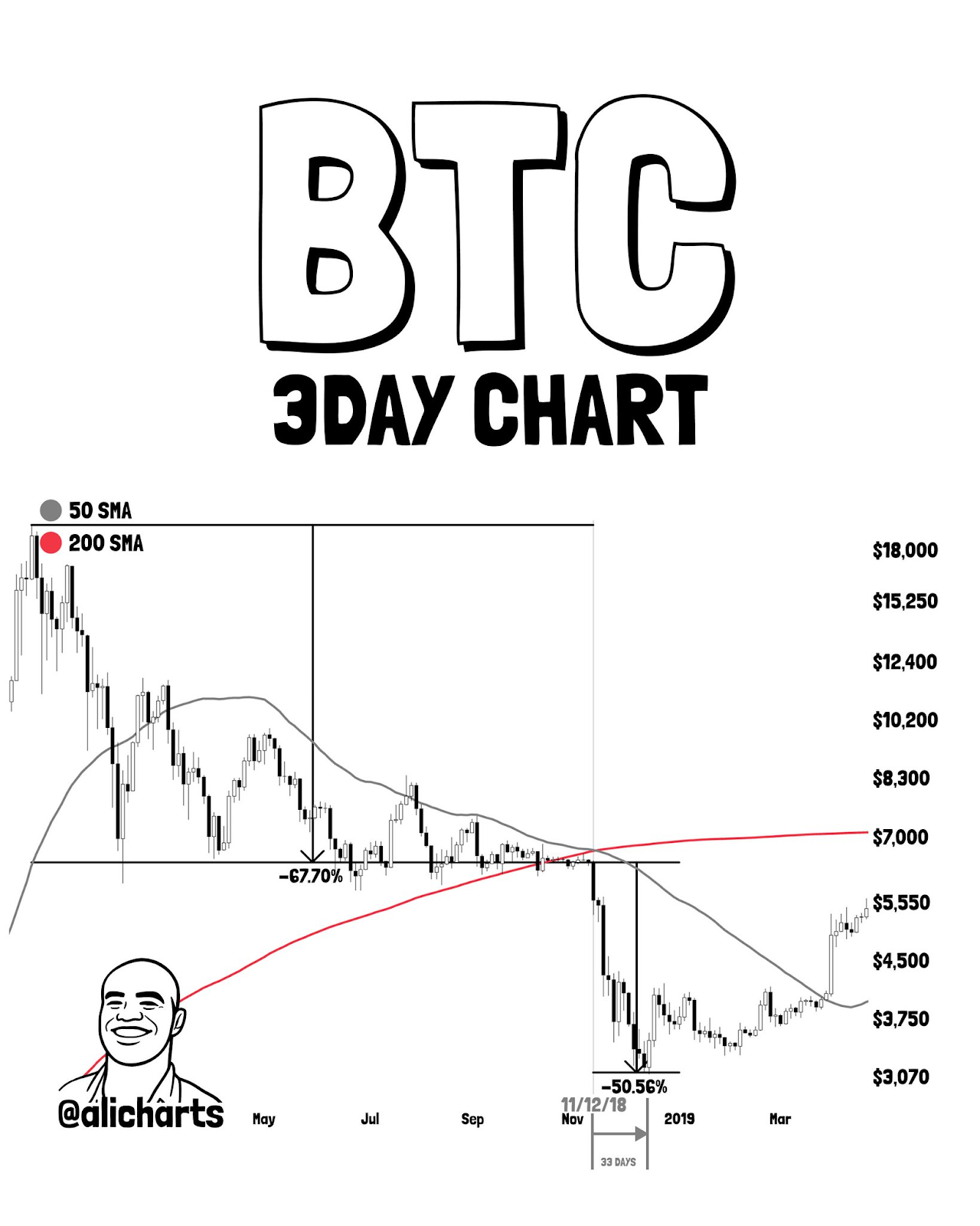 • 文章分析比特币市场,指出3日线图的50简单移动平均线和200简单移动平均线交叉是预测熊市结束和牛市开始的关键信号。