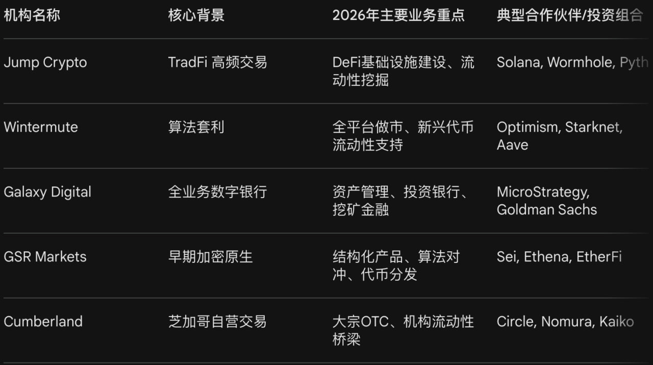 2026年的加密CTA生态中,传统的做市商(Market Makers)正积极向主动管理(Active Management)领域扩张。如GSR Markets和Jump Crypto,利用其深厚的微观结构理解能力,开发了融合了做市商报价逻辑的“微趋势”策略。