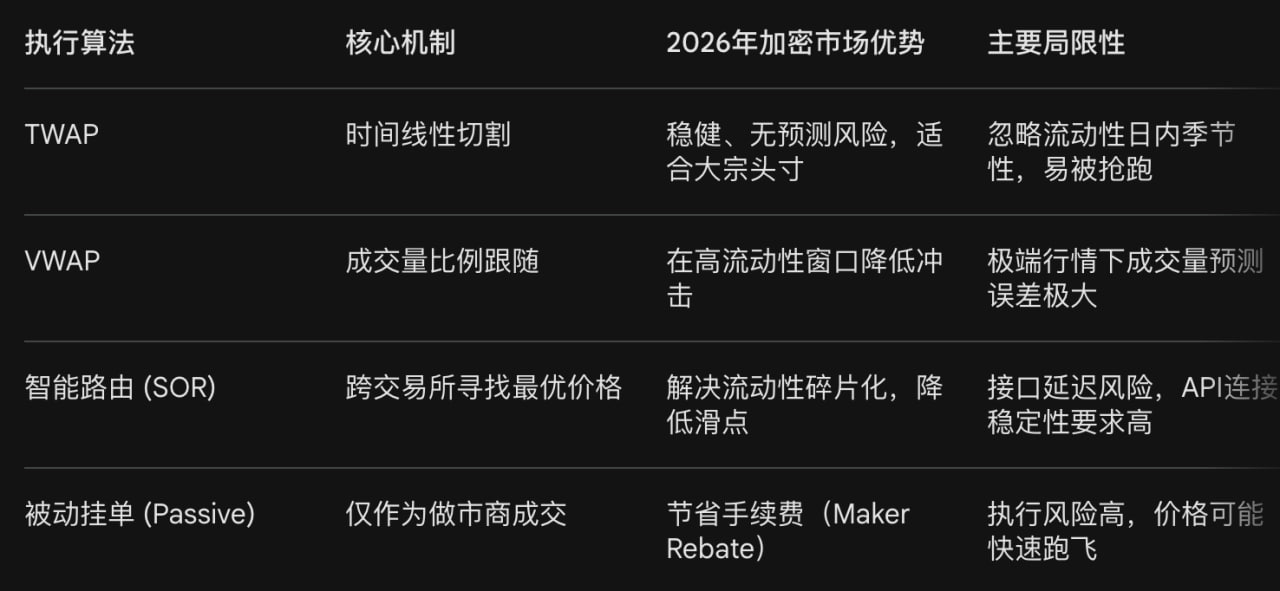 在执行层面,机构交易者正面临选择难题。TWAP(时间加权平均价格)被认为是“稳健型”选择,尤其是在流动性不可预测的加密市场,它通过线性切割风险来减少足迹信号 。然而,分析表明,TWAP在统计意义上的“流动性低谷”期可能会造成不必要的冲击。