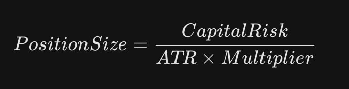 当ATR(14天或20天周期)扩大时,意味着市场风险增加,算法会自动缩小单笔交易的规模,从而在不改变止损金额的情况下,降低账户的整体波动率。例如,在一个10万美元的账户中,如果风险承受能力为1%,当ATR为1美元时,头寸可能是1000股;但当市场进入高波动的清算季节,ATR升至4美元,头寸则会自动降至250股 。