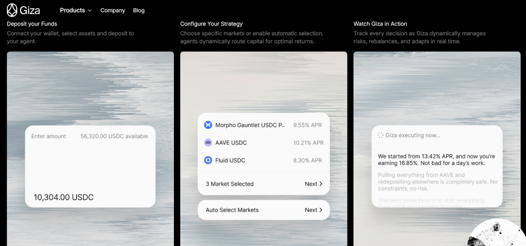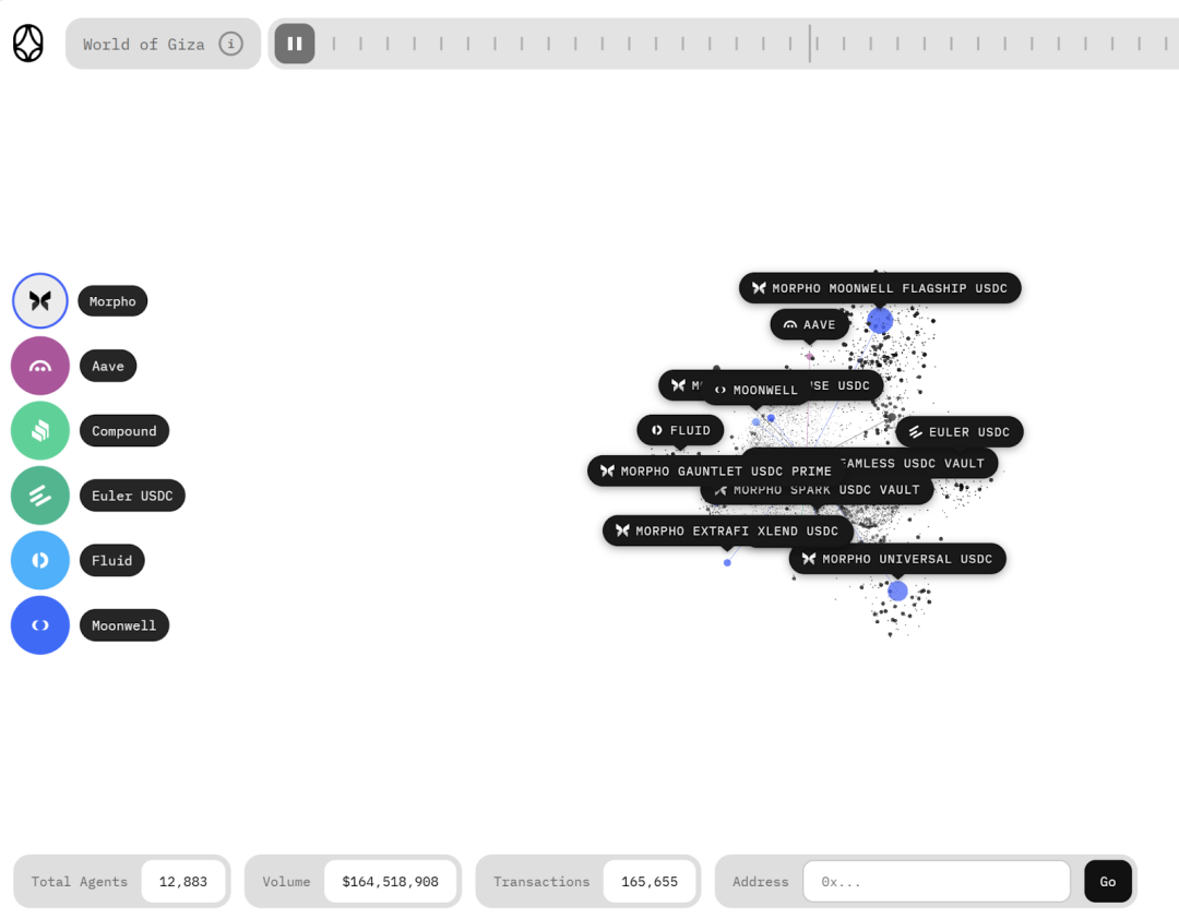 以 Giza 为例,其 ARMA Agent 于 2025 年 2 月在 Base 网络上线稳定币收益策略,持续监测 Aave、Morpho、Compound、Moonwell 等协议的利率变化,综合考量协议 APY、手续费成本与流动性后,智能调度用户资金以最大化收益。根据公开数据,ARMA 目前已拥有约 6 万个独立持有者、逾 3.6 万个已部署 Agent,管理资产规模(AUA)超过 2000 万美元。