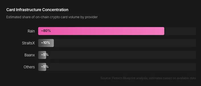 • 基础设施集中,Visa主导90%交易量,发卡机构如Rain服务多个平台,存在系统性风险。