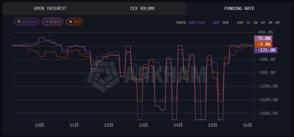 在最后的收割阶段,操盘手不再仅仅依赖现货价格上涨获利,而是通过”资金费率炸弹“进一步榨取出更高的价值。