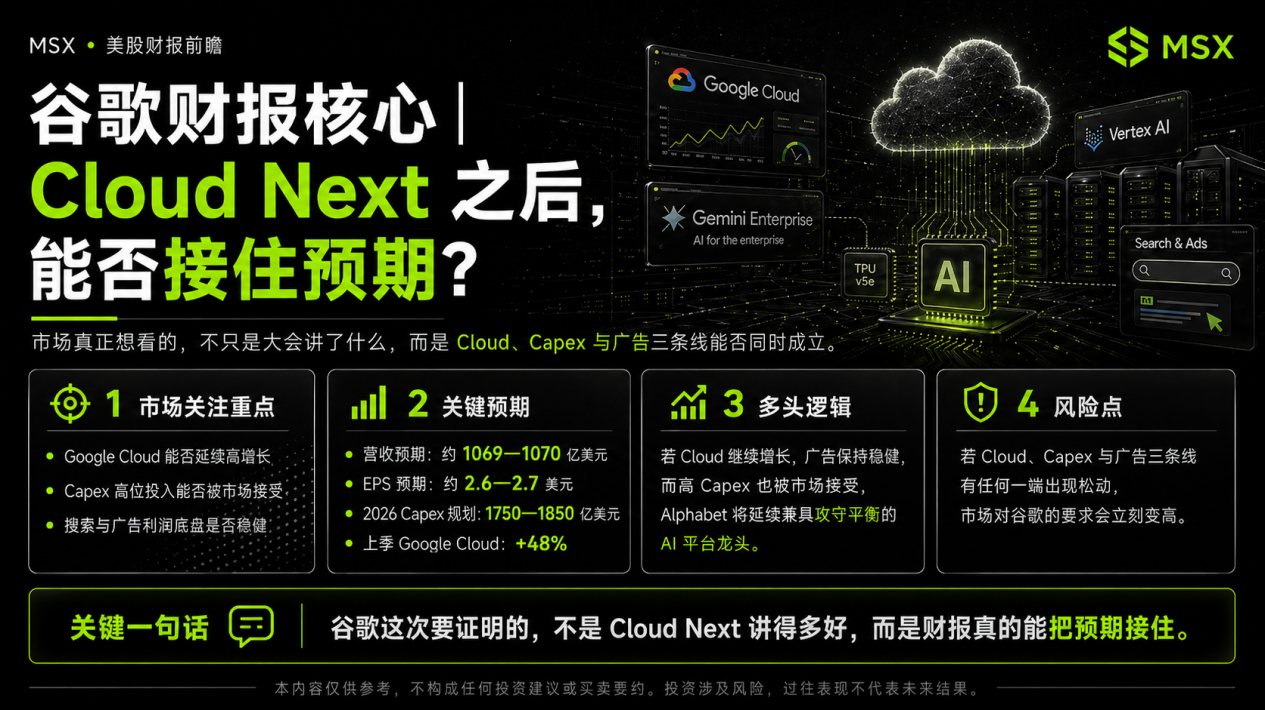 谷歌这次财报代表的,其实不是单一业务是否超预期,而是:Cloud Next 讲完之后,财报能不能把预期接住。