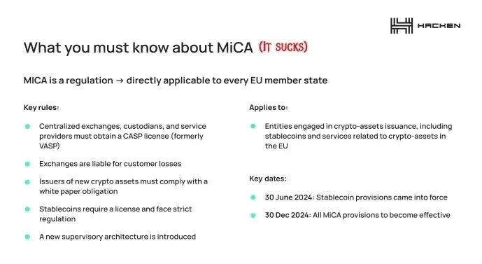 MiCA 不仅仅是监管欧洲加密市场,它实际上封锁了那些不具备法律和金融资源(而这正是加密创始人几乎总是缺乏的)的参与者进入的通道。