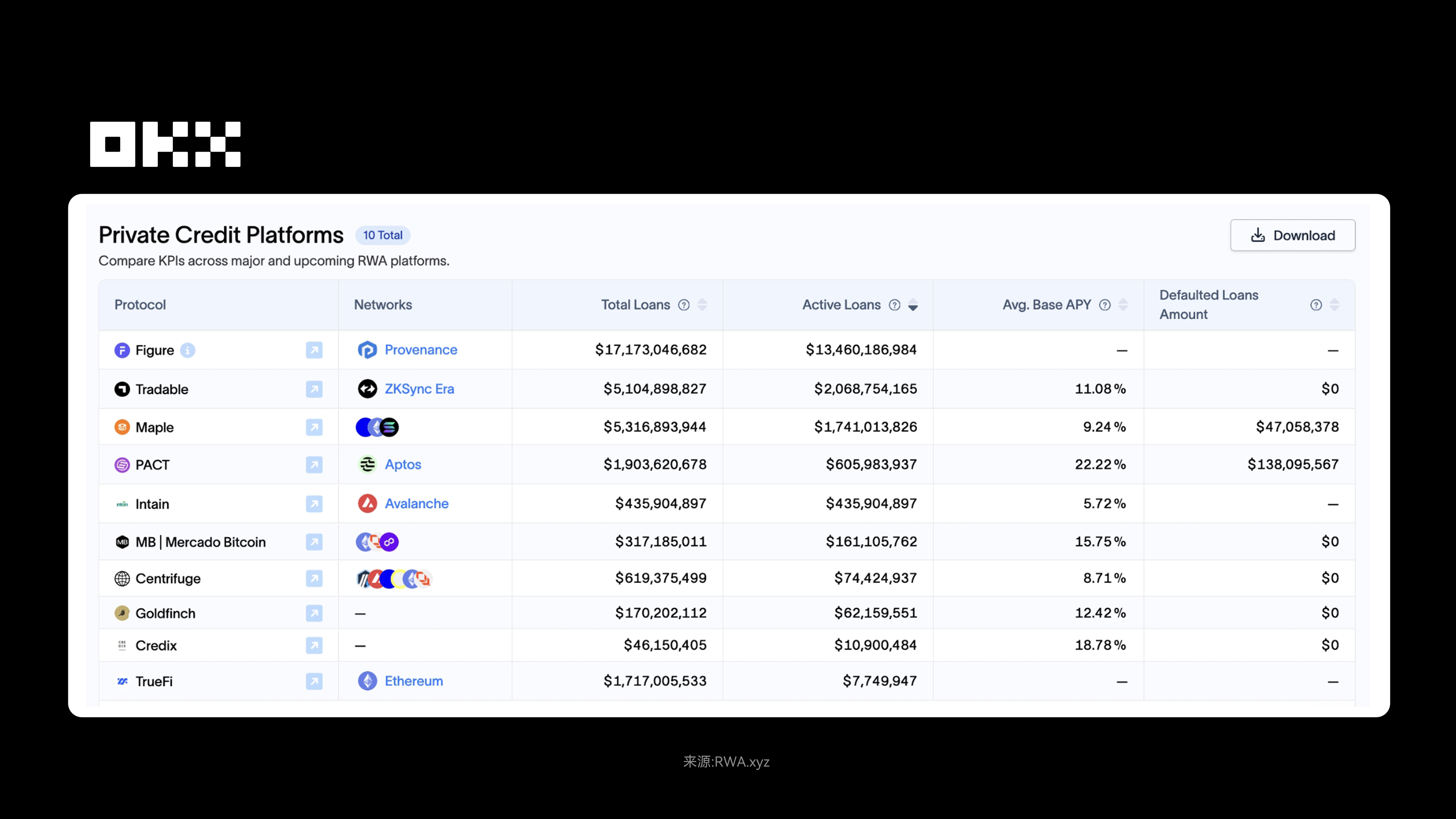私募信贷的增长来自高收益和相对稳定性,为 DeFi 用户提供 5%-15% 年化收益,波动独立于加密市场。代币化将非流动资产碎片化,吸引全球加密资本,提高流动性,同时赋能传统借贷方。此外,它并非重新定义信贷,而是提供了一个更高效的收据机制。一旦这些资产上链,它们就可以像其他加密资产一样被插入借贷市场、用作抵押品、或打包成资产支持证券。