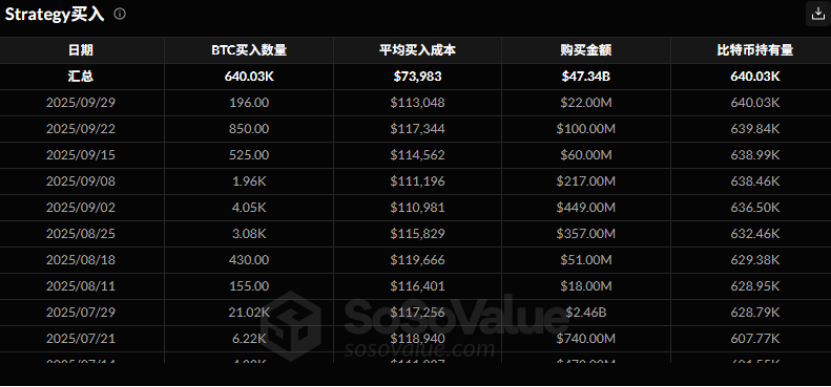 近期(9/27-10/9),微策略(MicroStrategy)于9月29日再次以2200万美元资金,均价113,048美元购入了196枚比特币。尽管此次购入量较小,但微策略在9月份的增持频率明显高于7、8月份,对市场信心起到了一定的提振作用。