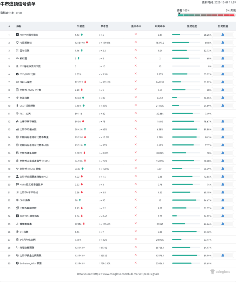 本周各项逃顶指标无一触发,且大部分指标数值出现不同程度下降,显示市场并未出现全面过热信号。
