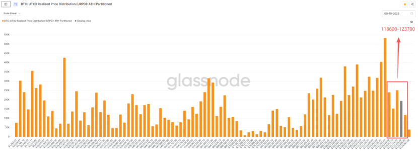 在比特币成功突破历史新高后,当前在118,600至123,700美元区间内形成了均匀的筹码换手区。主要的筹码峰已从116,900美元附近上移至117,400美元。在118,600至123,700美元区间未形成单一超高筹码峰之前,可以认为当前的换手相对健康。若后市在此区域形成超高筹码峰,则需警惕短期见顶风险。