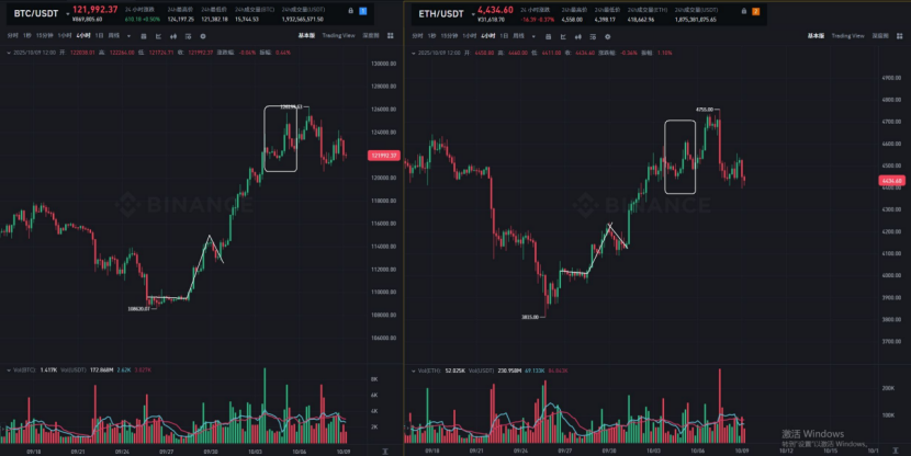 国庆假期期间,加密货币市场波动显著加剧。回顾节前走势,BTC在9月28日前反弹乏力,呈现横盘弱反弹格局,而ETH则率先止跌。转折点出现在9月28日至30日,BTC突然发力,一举收复了9月25日至27日的跌幅。此前弱势横盘后能快速收复失地,这一信号暗示市场技术面可能已发生转变,此前的空头思路应转为震荡或看涨。