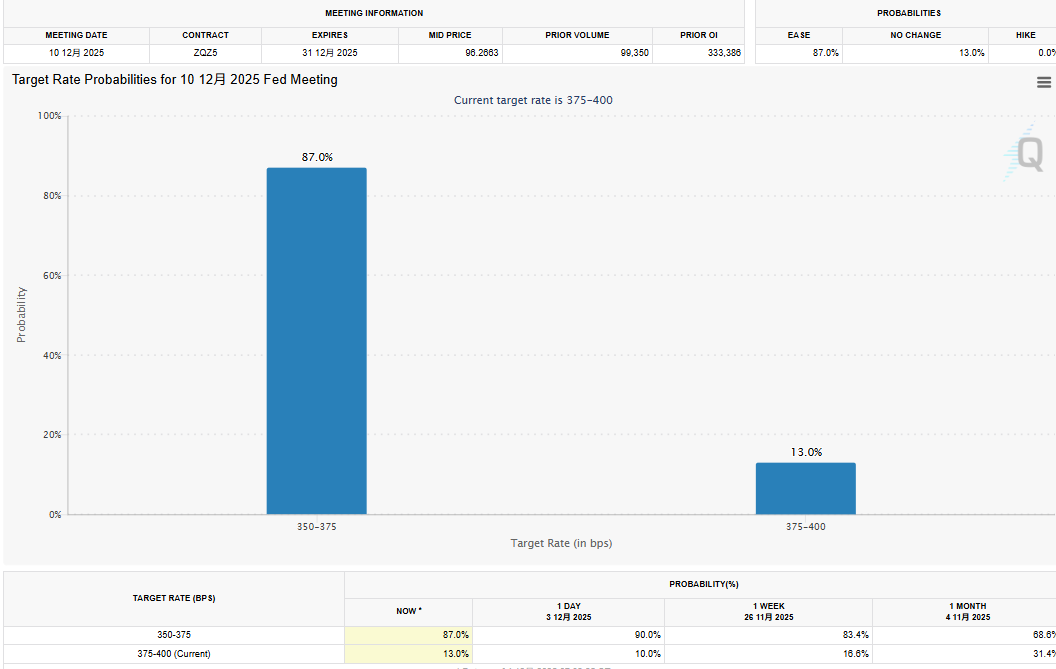 87%降息概率概率利好美债曲线(10年期收益率或稳守4.2%),股市/加密货币可借“暂停QT”反弹。降息周期未完,纳斯达克等成长股仍有10-15%上行空间。