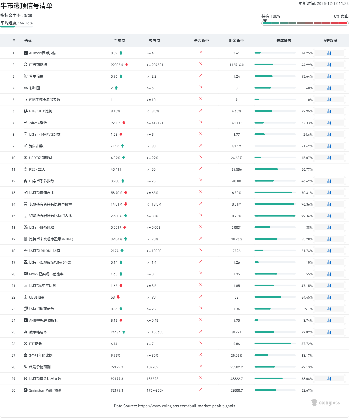 - 风险提示:逃顶指标未报警,多指标预警有所降低,短期无明显见顶信号。