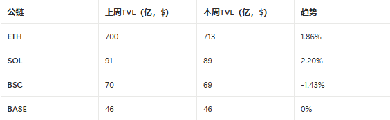 - 核心指标:链上总 TVL 达 1236 亿美元,环比上升 0.98%。