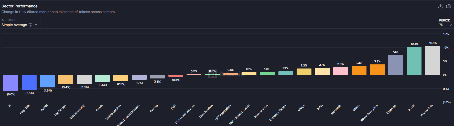 - 板块流量:隐私板块反弹显著,ETH 生态板块表现较强,其余板块多跟随 BTC 节奏,整体分化明显。