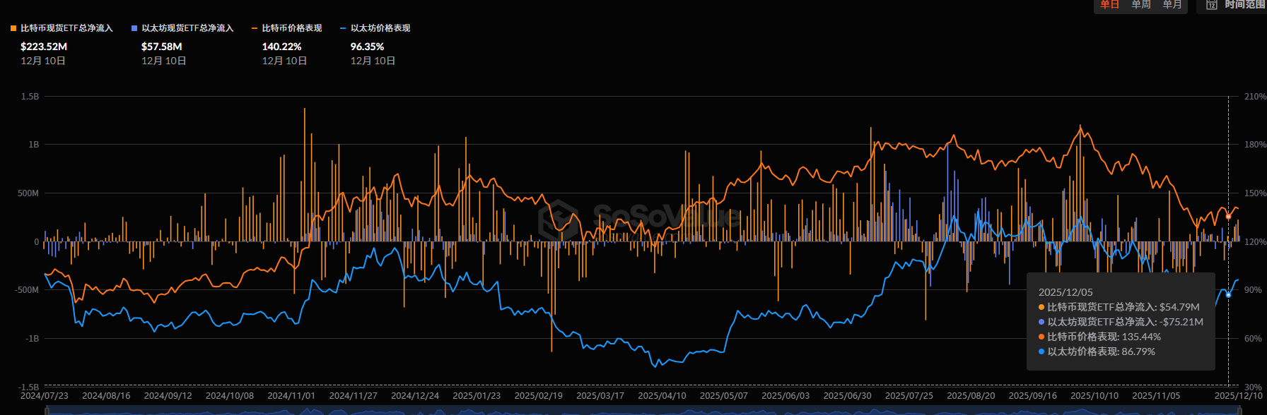 2.1.2 ETF 资金:BTC 重返净流入,ETH 流入提升