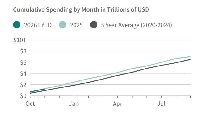 • 裁员显著但支出反升:联邦员工成功削减27.1万人(降幅9%),创和平时期最大裁员纪录,但节省效果被强制性支出(如社保、医保、国债利息)的刚性增长完全抵消。