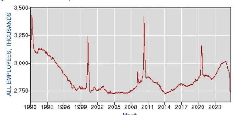 图:1990年以来联邦雇员人数