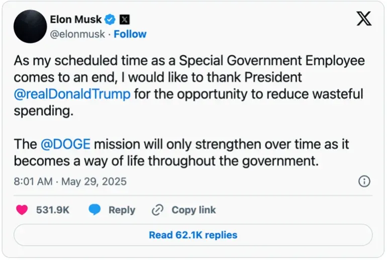 • 改革快速失败:马斯克仅在任130天便离职,DOGE于2025年11月悄然解散,比原定计划提前8个月,标志这场“硅谷式政府改造”实验彻底失败。
