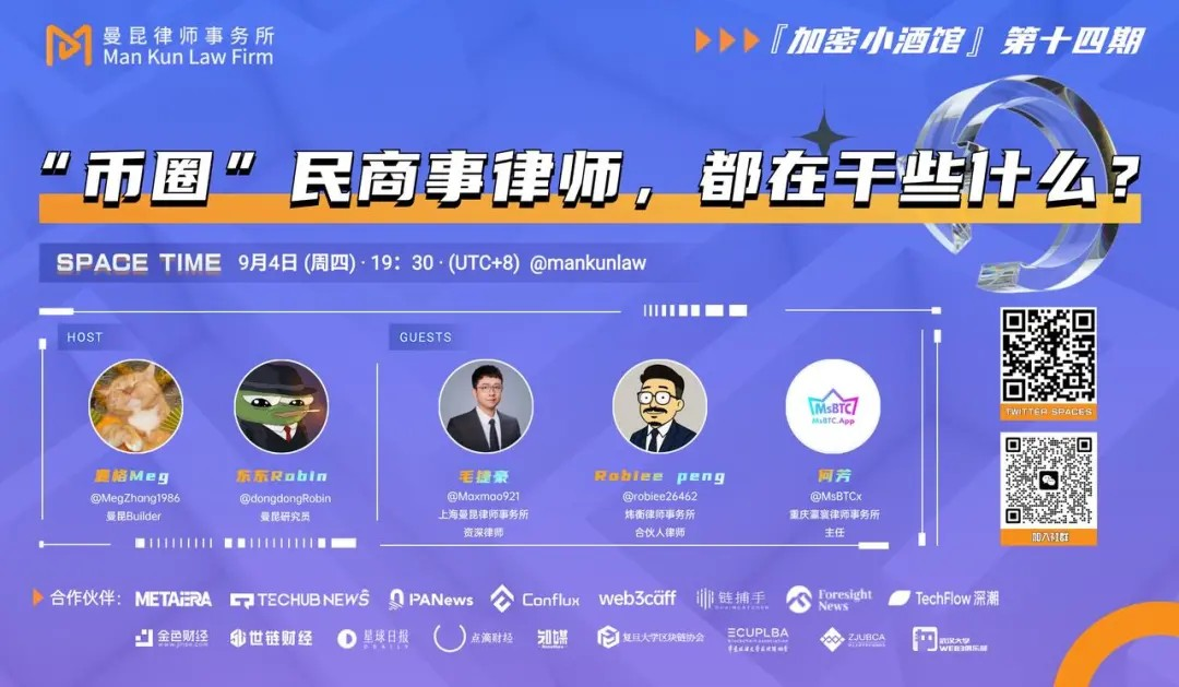 每周四晚7点半,加密小酒馆准时开业!从投资黑话、创业故事、热点吐槽,到赛道预判、合规避坑……我们用AMA方式,聊你想听,大咖云集!主题不设限,轻松聊Web3!面对监管风向突袭、合规成本高企,曼昆资深律师带你洞悉趋势,少踩坑!