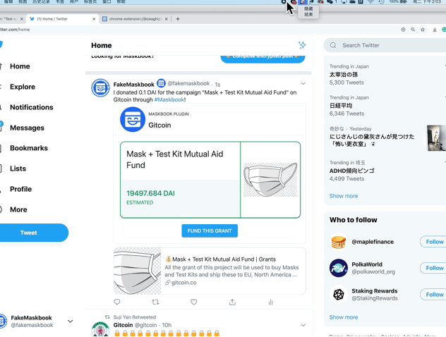 Maskbook与Gitcoin合作推出“小程序”,允许用户在社交网络中发起加密货币捐款