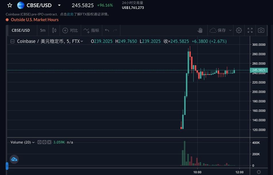 PANews 12月22日消息,加密货币衍生品交易所FTX 今日上线了Coinbase Pre-IPO产品CBSE,目前价格为239.5美元,日内涨幅达96.16%。