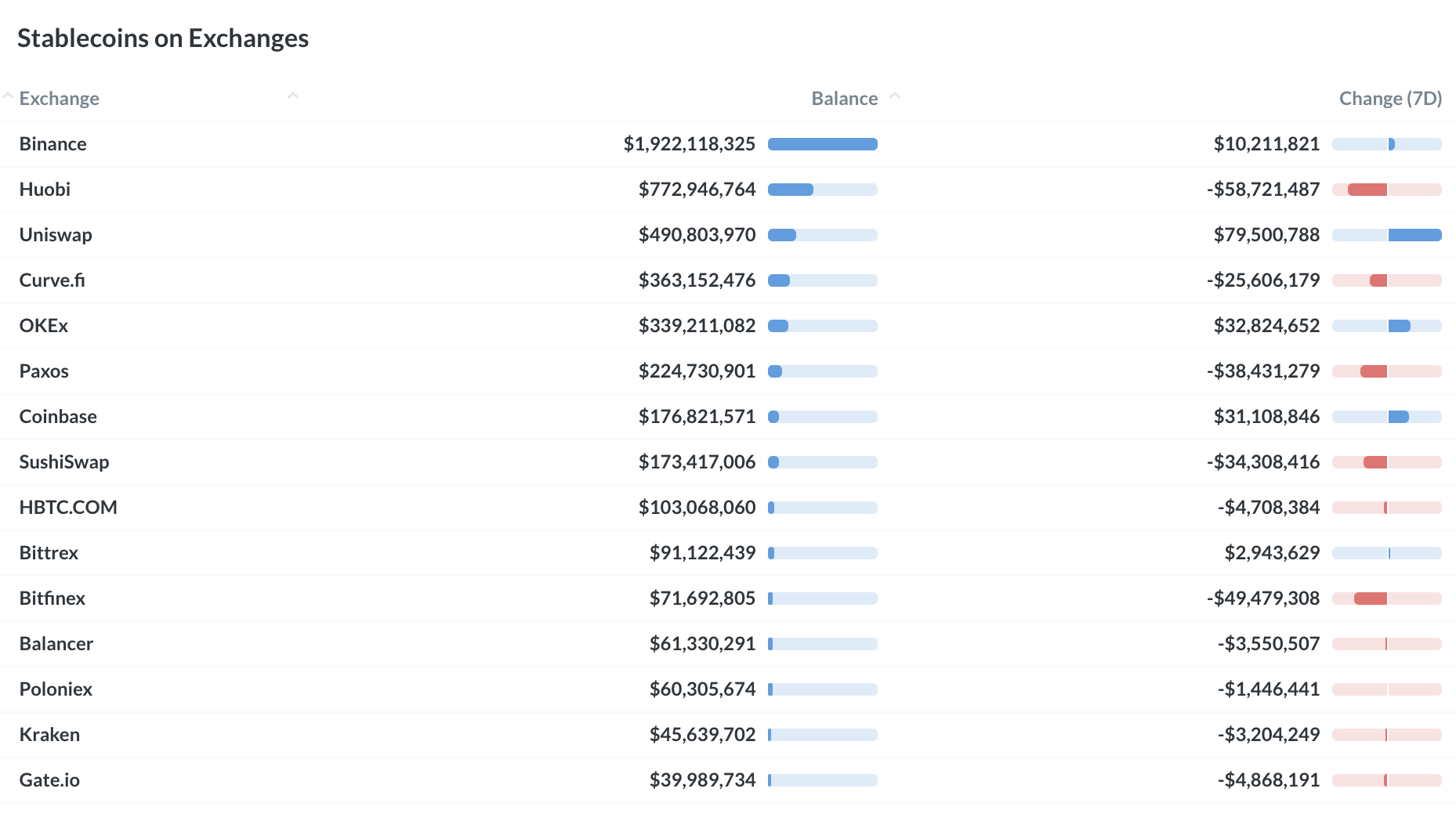 根据Nansen的统计,目前,Binance、Huobi和Uniswap是三大稳定币交易市场。值得关注的是,在稳定币交易量前15的市场中,有4个DeFi平台,除了Uniswap以外,还有Curve、Sushiswap和Balancer。