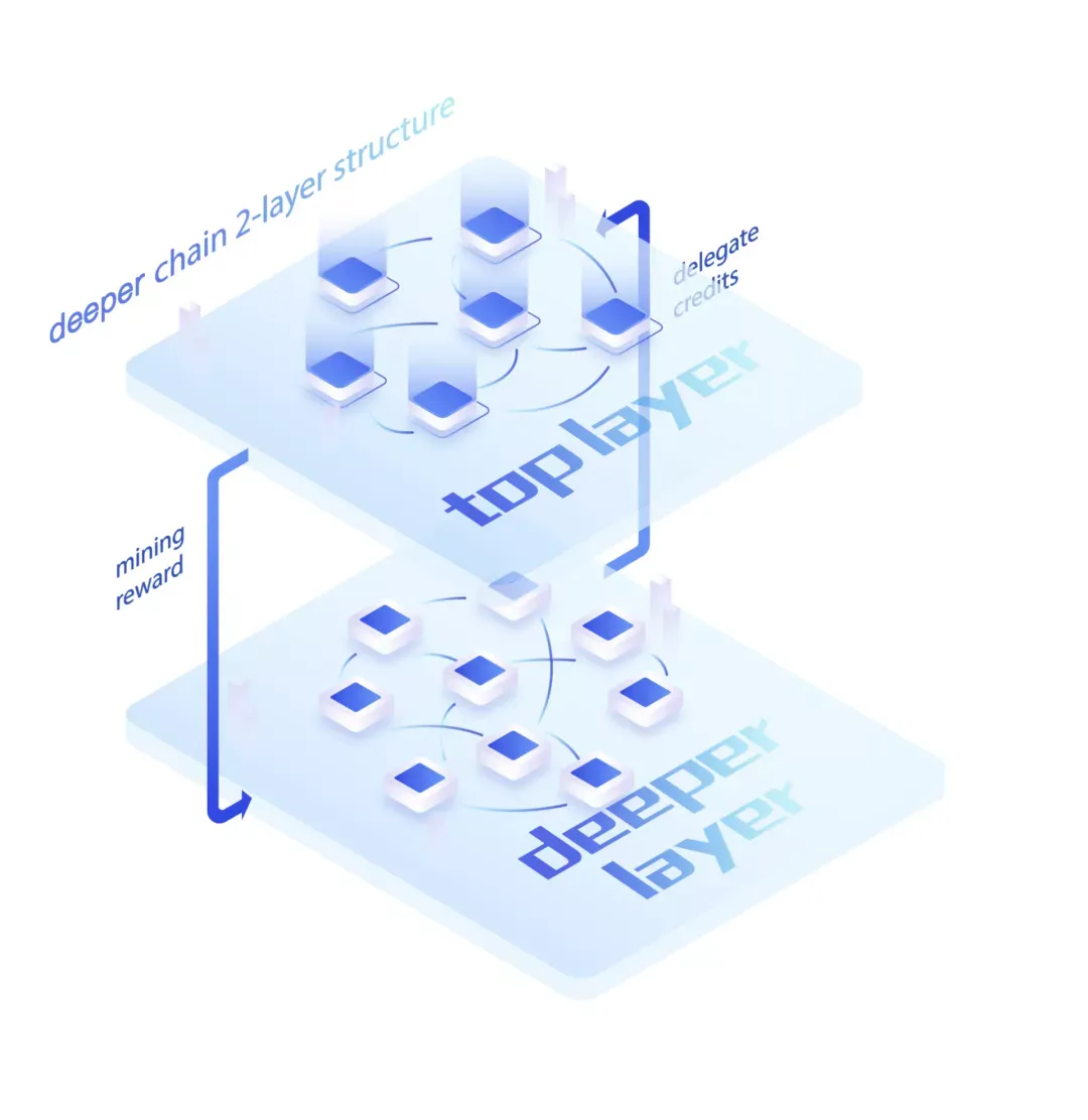 Deeper Network是由最上层的验证节点和下一层的Deeper设备节点两层构成,上层的验证节点主要负责出块,而下层的Deeper设备节点主要负责监督和选择上层的验证节点。