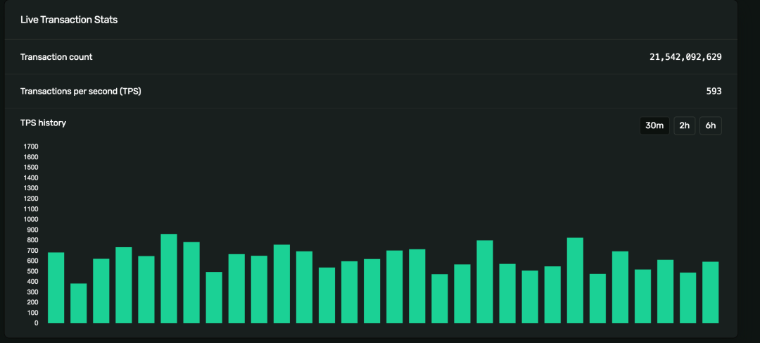 ⽬前 Solana 主⽹实际 TPS (来源:explorer.solana.com)