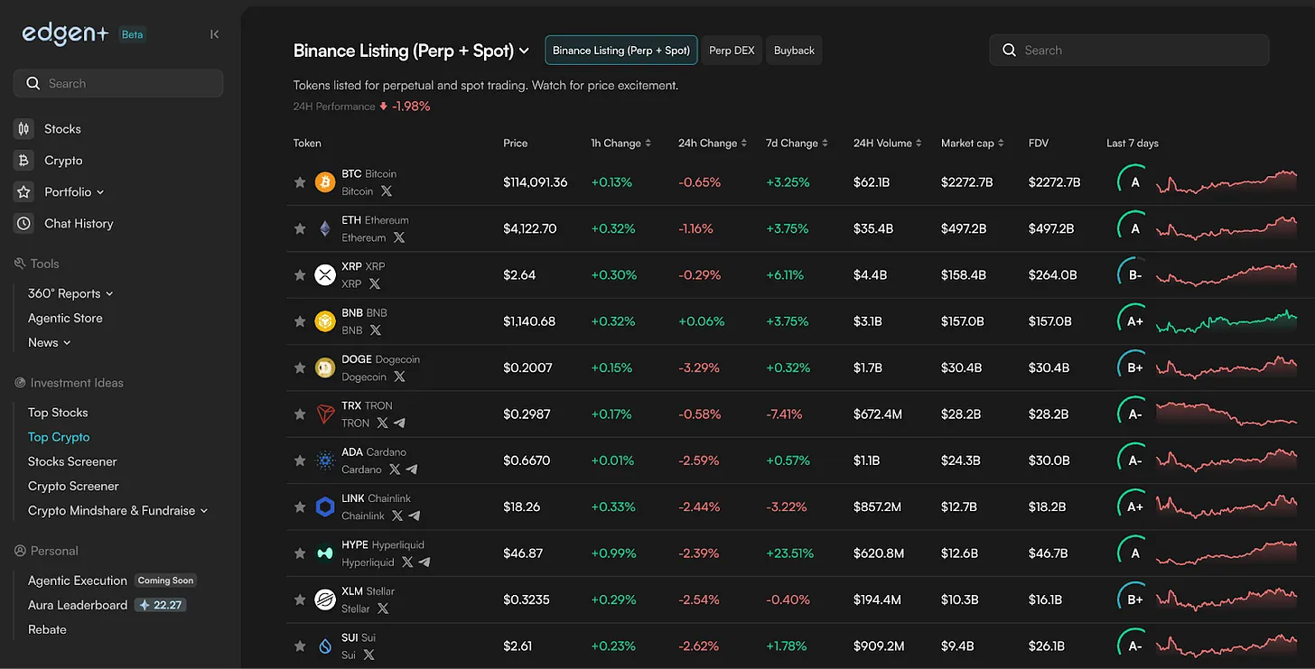 - Edgen通过AI驱动的金融智能平台弥合了这一差距。该平台整合了股票和加密货币的分析,不仅提供数据,更提供可付诸实践的洞察。