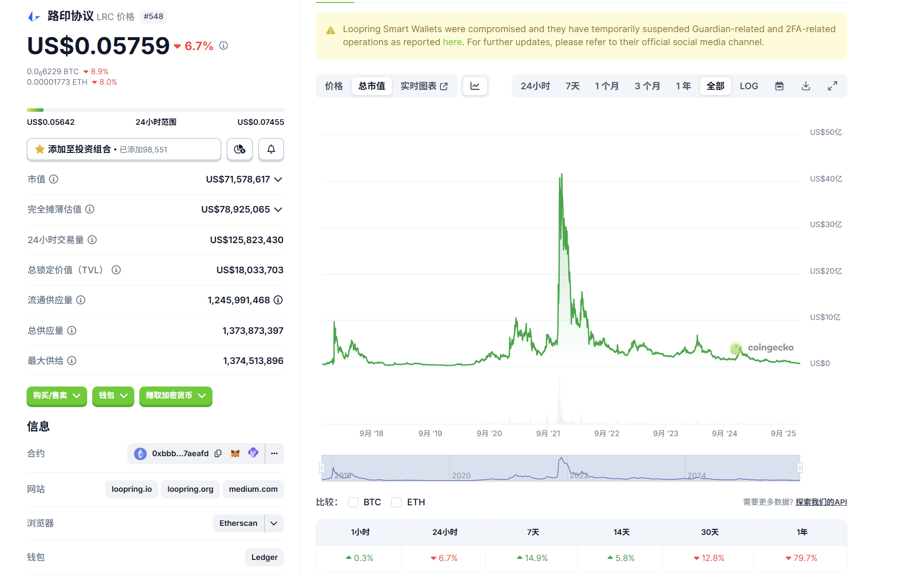 - 市场流动性及需求下降:随着 ProBit 等交易所下架、DeFi 业务关闭以及市场关注度下降,LRC 流动性可能继续下降,价格波动较大,短期投机风险高。