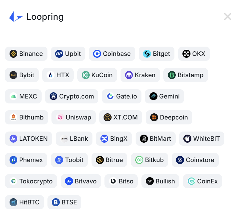 - 链上流动性:由于 Loopring DEX 运作于其独立的 L2,需先将资产存入 L2 后才能交易,且无法与其他 L2/L1 合约组合使用。因此链上深度有限,用户更多依赖 CEX 交易。