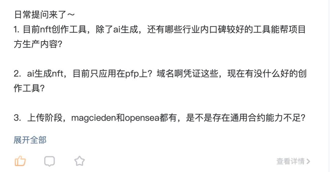 当然一定要跟大家画个重点的是,想要学知识,提问题,就去知识星球内逛一逛。但除了学习之外,想要和大佬聊天取经,无论是炒token/NFT经验、技术经验、选token经验,那你一定要加社群。