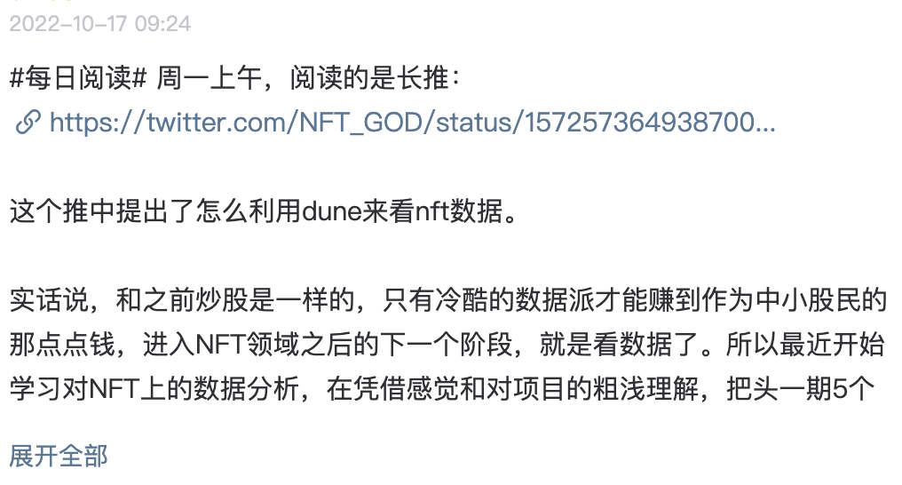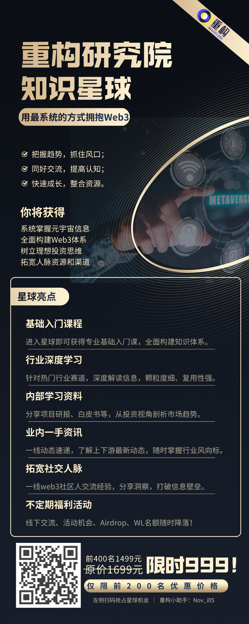 前几天星球里发布的内部报告就已经让很多星友看了觉得物超所值,更别说星球内还能获得那么多的内容,web3入门知识、未来NFT空投以及机会,更重要的是,帮你拉群介绍,让接触业内专家、VC、项目方新机会等等,特别是一些能空手套白狼的亲身参与实践,能够迅速扎根行业内。