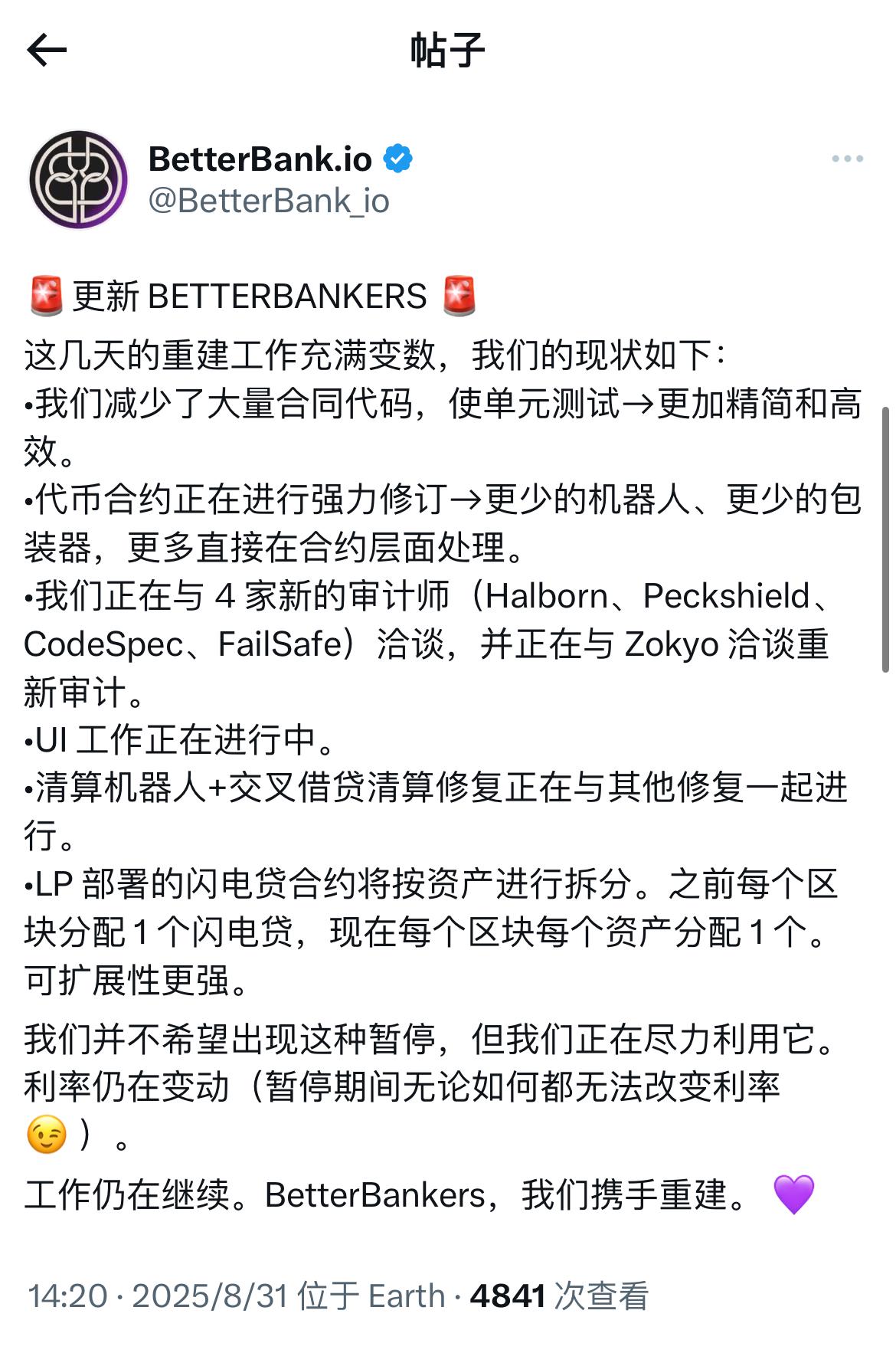 事件详情:8月27日,PulseChain 链上 DeFi 平台 BetterBank 因智能合约权限校验模块存在设计缺陷遭攻击。攻击者利用这一漏洞伪造质押凭证,绕过平台质押物审核机制无中生有提取资产,造成约 500 万美元损失。部分被盗资金已被兑换为 215 枚 ETH,通过跨链通道转移至以太坊混币池,凸显了新兴公链生态中智能合约形式化验证不足的风险。