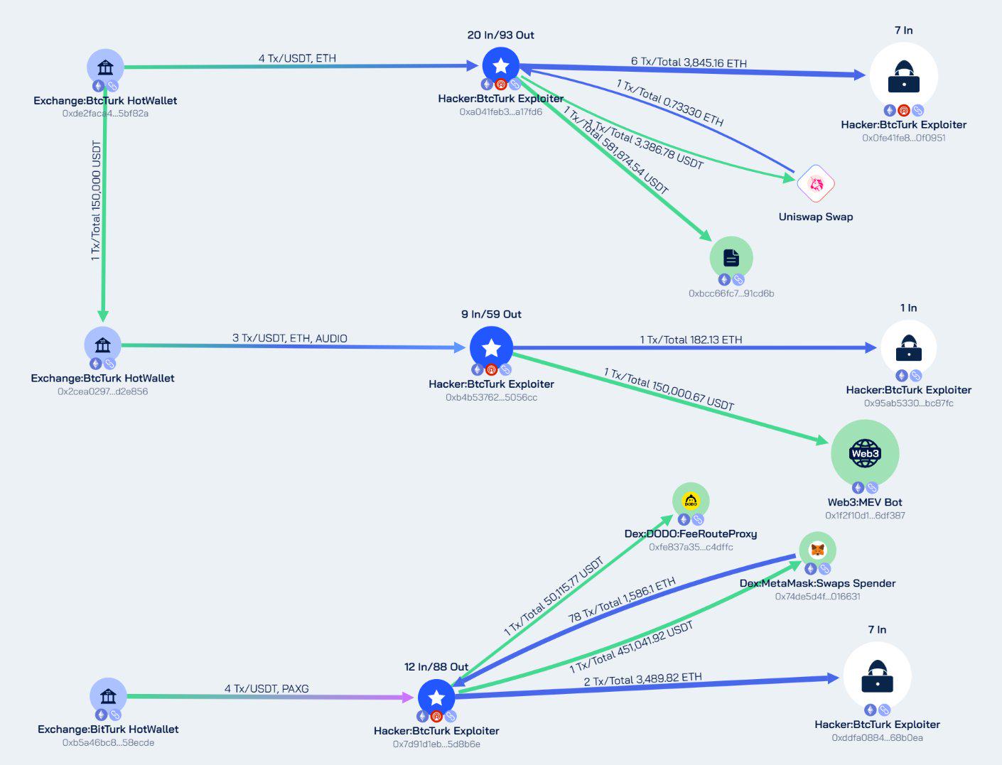 事件详情:8月14日,土耳其第二大交易所 BtcTurk 遭遇热钱包攻击,因私钥泄露导致约 4890 万美元资产被盗。黑客在以太坊、Avalanche、Arbitrum 等 7 条链上实施跨链攻击,将资产转移至两个地址后通过 DEX 快速兑换为 ETH 洗钱。交易所紧急暂停加密货币充提服务,强调冷钱包资产未受影响且法币交易正常进行,但此次事件已是其一年内第二次发生同类热钱包安全事故,暴露了多链资产管理中私钥防护体系的持续缺陷。