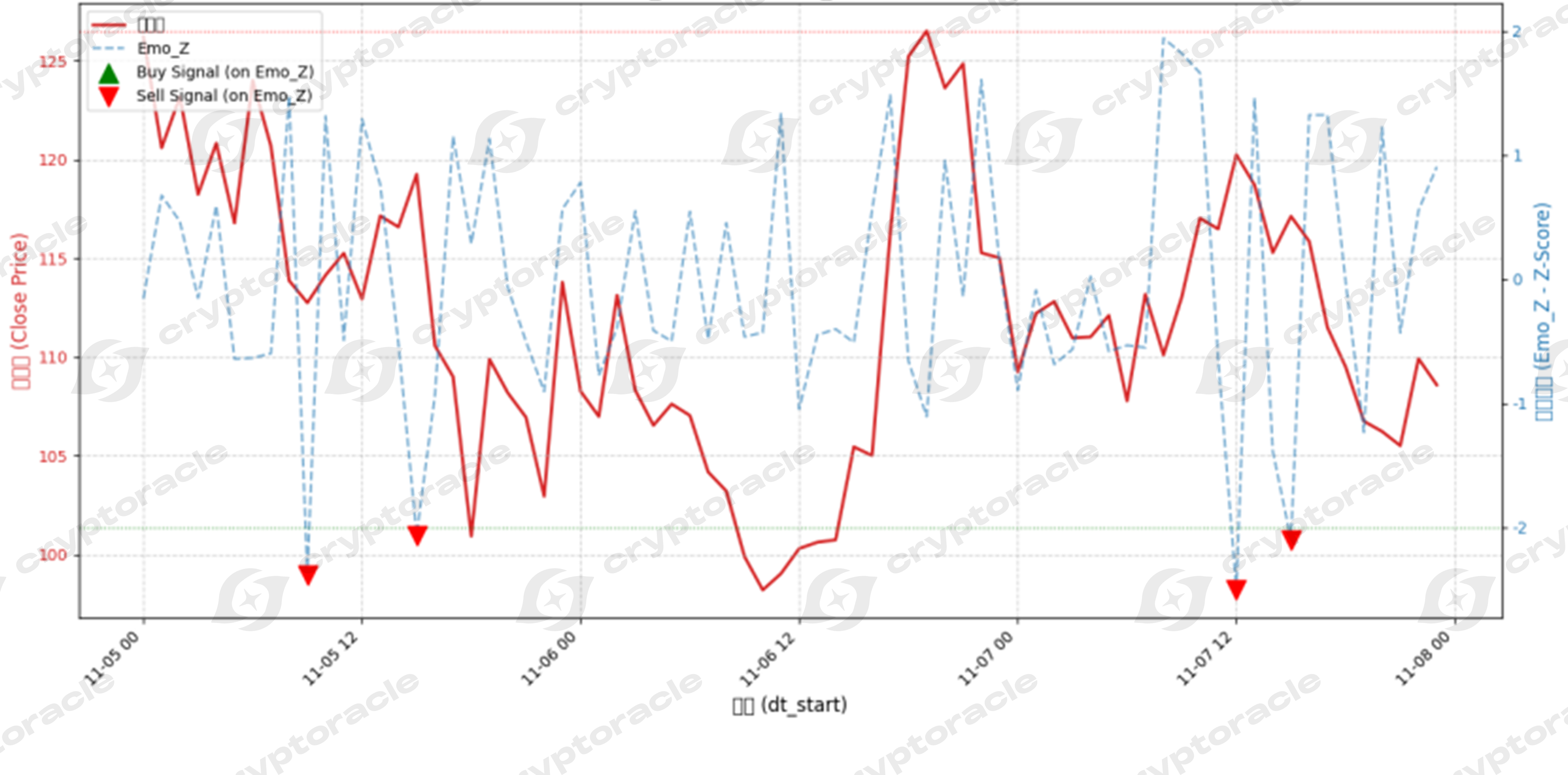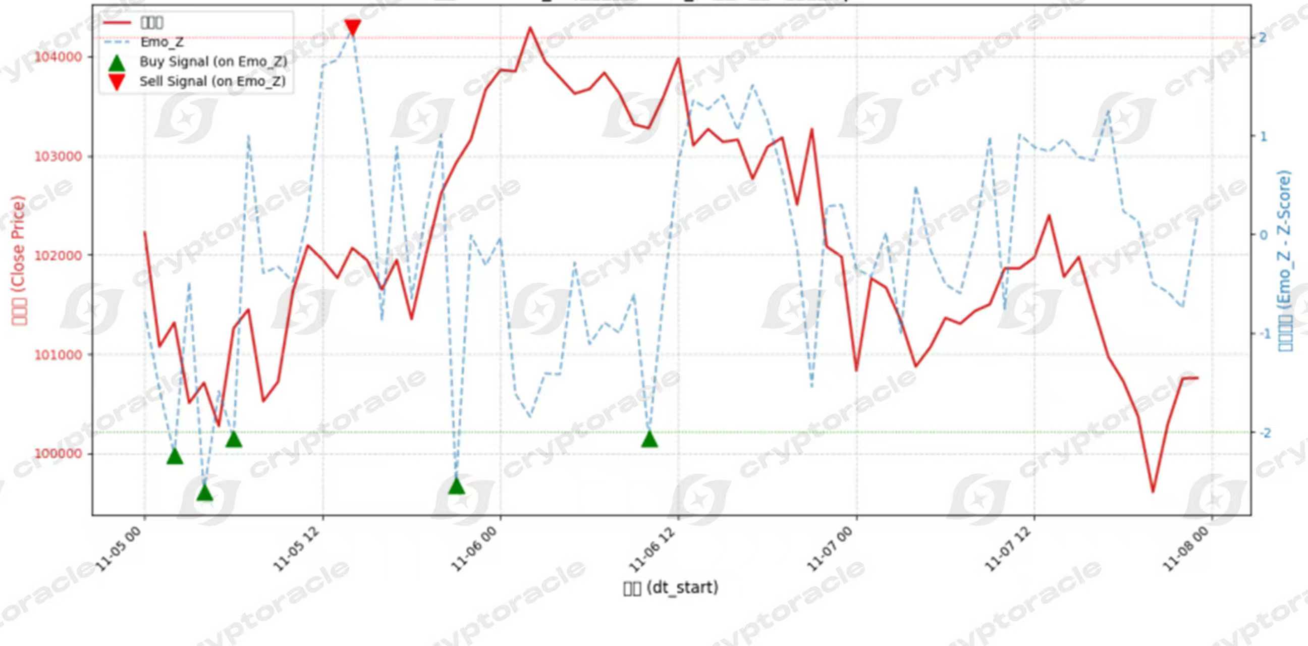 - 阈值设定为 ±2,对应情绪分布的极端区间,仅在市场情绪出现强烈偏离时触发信号。