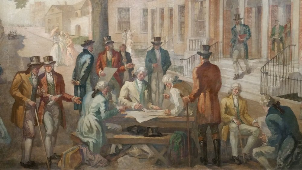 那时,有24 位股票经纪人聚集在纽约华尔街一棵梧桐树下,并签署了《Buttonwood Agreement》。