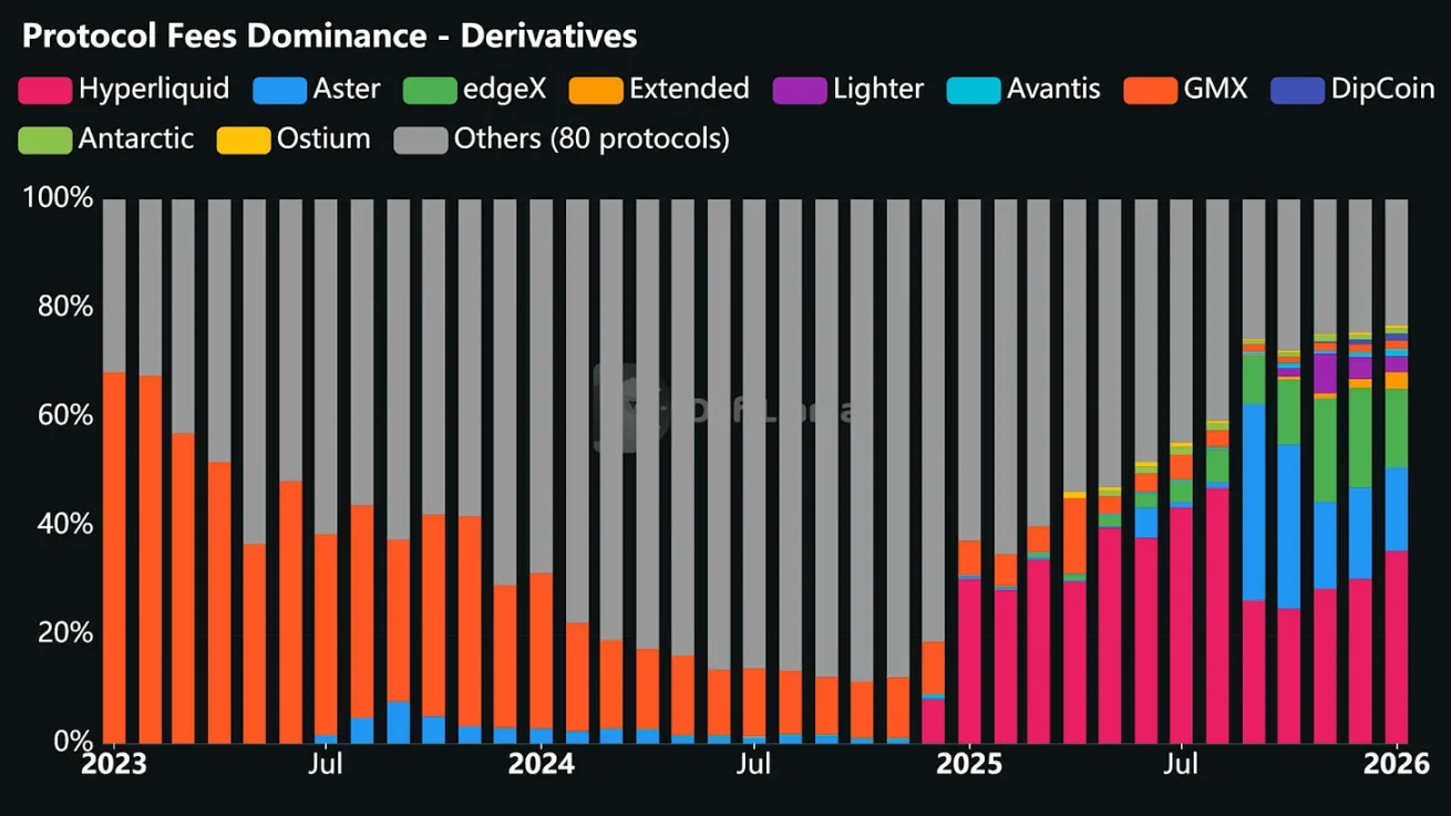2025 年,Hyperliquid 凭借平台内数量最多的做市商提供的充足流动性,称霸永续合约去中心化交易赛道。这也让该平台在去年 12 个月中,有 10 个月成为手续费收入最高的去中心化永续合约交易所。